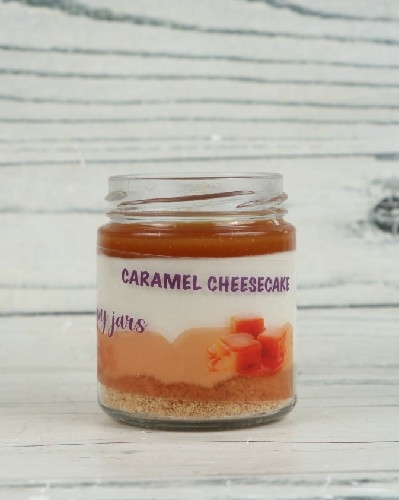 Incredible jar of Philadelphia cream-based cheesecake with buttery cracker base & caramel topping.
