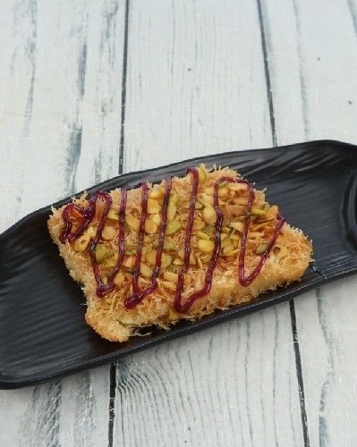 Relish the crunchy shredded pastry layered with a generous creamy filling & Nutella topping.